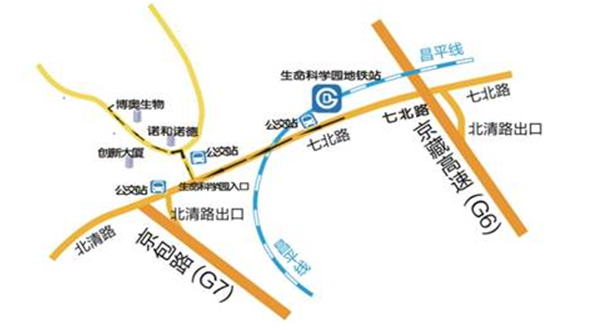 5、 地鐵昌平線生命科學園站A1出,在地鐵生命科學園地鐵站公交站乘坐871路到達生命園西環路站下車,往回走50米即到博奧生物。